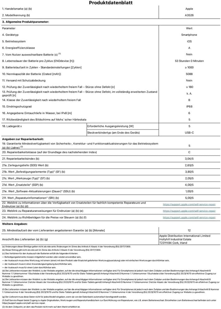 Lieferumfang iPhone mit iOS 26, USB-C Ladekabel